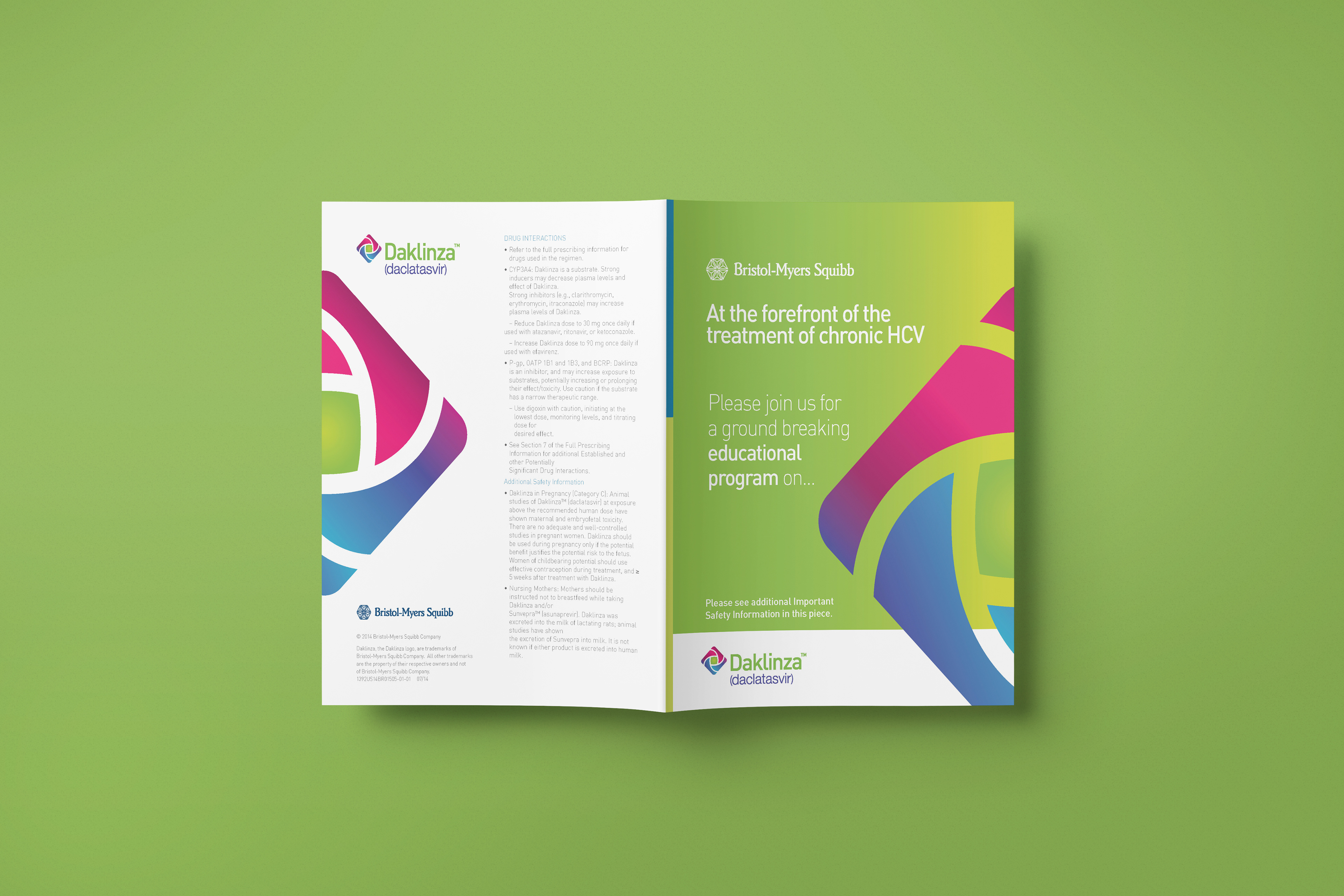 Daclatasvir, sold under the brand name Daklinza, is an antiviral medication used in combination with other medications to treat hepatitis C. The other medications used in combination include sofosbuvir, ribavirin, and interferon, vary depending on the virus type and whether the person has cirrhosis. Daklinza was discovered by scientists at Bristol-Myers Squibb (BMS); the precursor was identified using phenotypic screening in which the GT-1b replicon system was implemented in Huh7 cells and bovine viral diarrhea virus also in Huh7 cells was used as a counterscreen for specificity. Bristol Myers Squibb also developed the drug, with the first Phase I trial publishing in 2010. It was approved for use in Europe in August 2014, in the US in July 2015, and in India in December 2015; it was first in the class of NS5A inhibitors to reach the market.