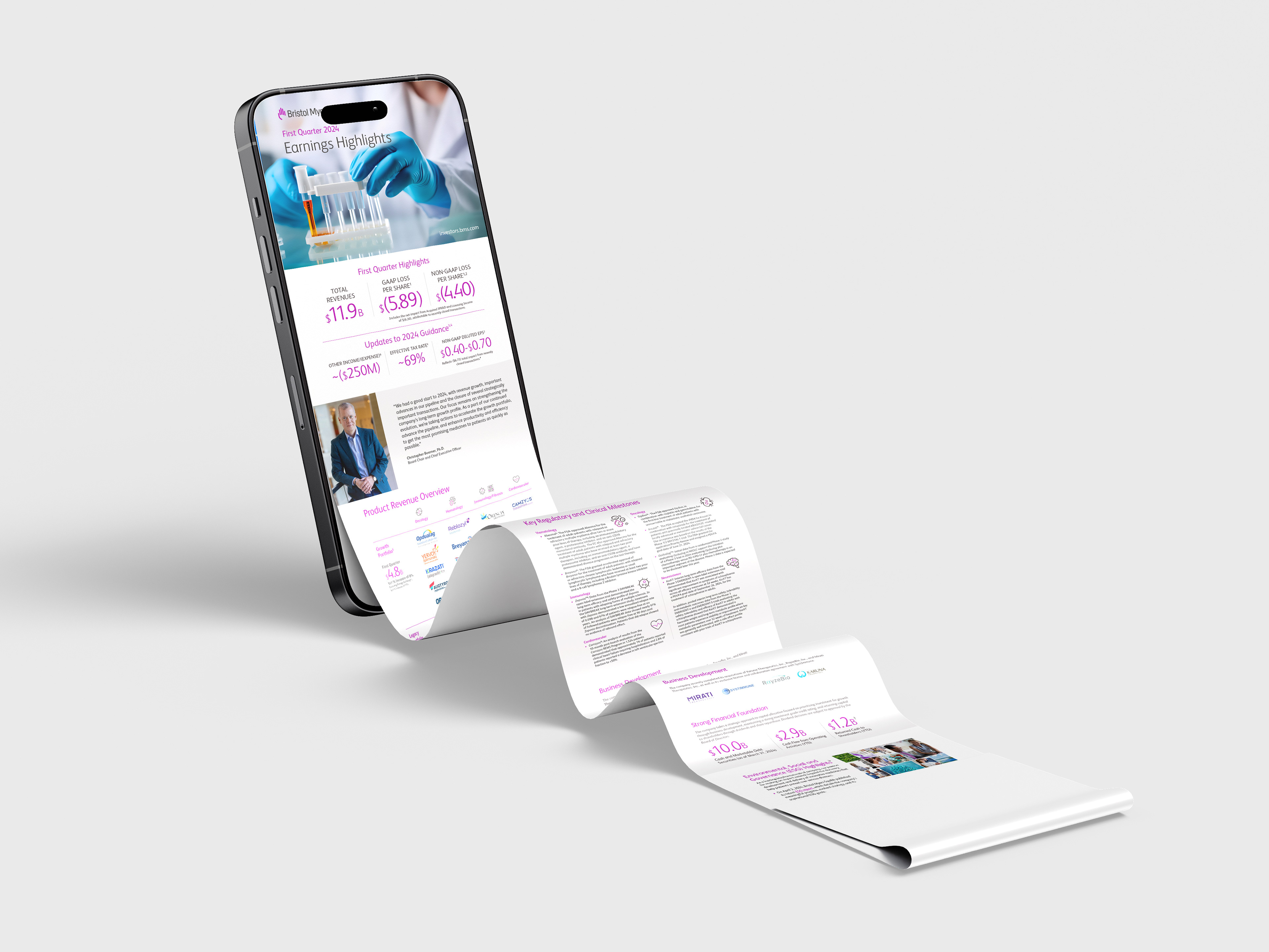 At the end of each quarter, I work with the financial communications team to produce an infographic highlighting the financial and operational key points. The infographics, involving inputs and approvals from investor relations, legal, R&D, and the offices of the CEO and CFO, are a two-week sprint to finalization prior to earnings calls.